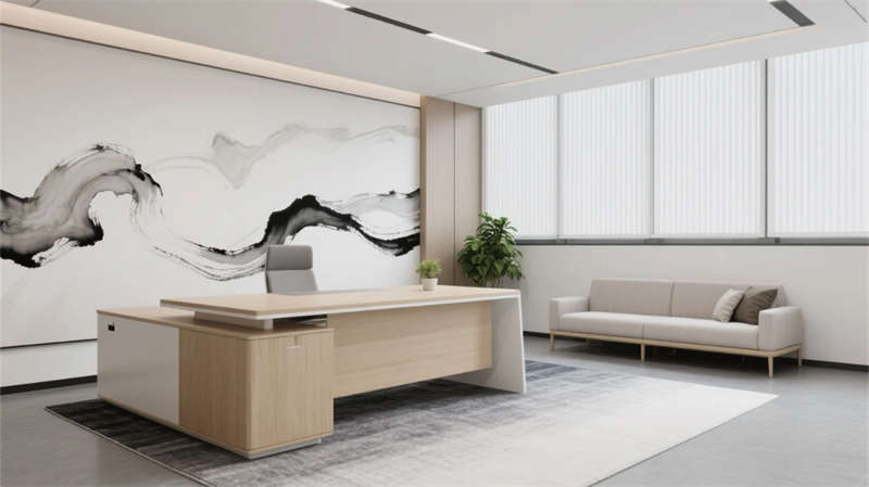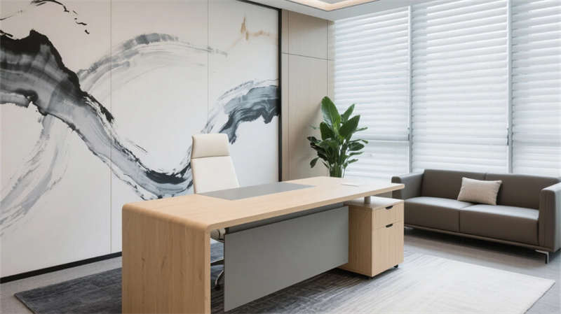 該設(shè)計以現(xiàn)代簡約語言重構(gòu)辦公空間秩序,通過光影與材質(zhì)的精妙平衡,營造滁州商務(wù)美學(xué)的當(dāng)代樣本??臻g以淺木、暖灰與啞光白為主調(diào),線性光帶貫穿各區(qū)域,形成視覺連續(xù)性。開放辦公區(qū)借落地窗引入瑯琊山景光影,百葉簾調(diào)節(jié)自然與人工光的韻律;協(xié)作區(qū)弧形沙發(fā)與綠植墻柔化幾何理性,激發(fā)團(tuán)隊創(chuàng)造力。